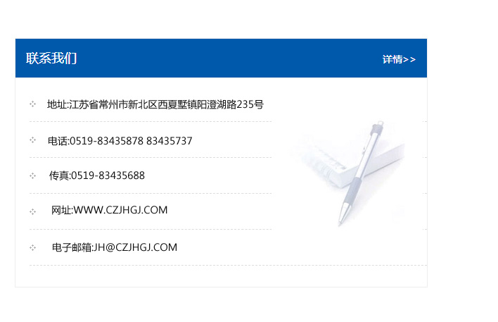 地址:常州市新北區友邦商務大廈1幢16、17層  電話:0519-85101652  傳真:0519-85112595  郵編:213022  網址:www_cz-jiayue_cn.zjyzms.com  郵箱:xiajifengaa@163.com